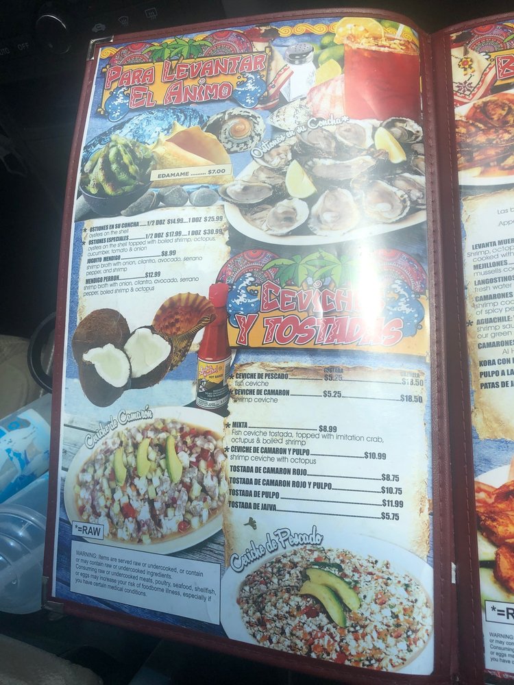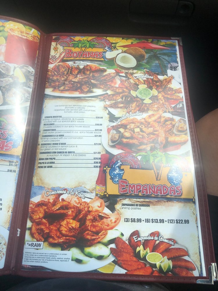 Aguachile verde, a la kora, al chipotle, empanizados y langostinos. Small: Options only. Large: Options